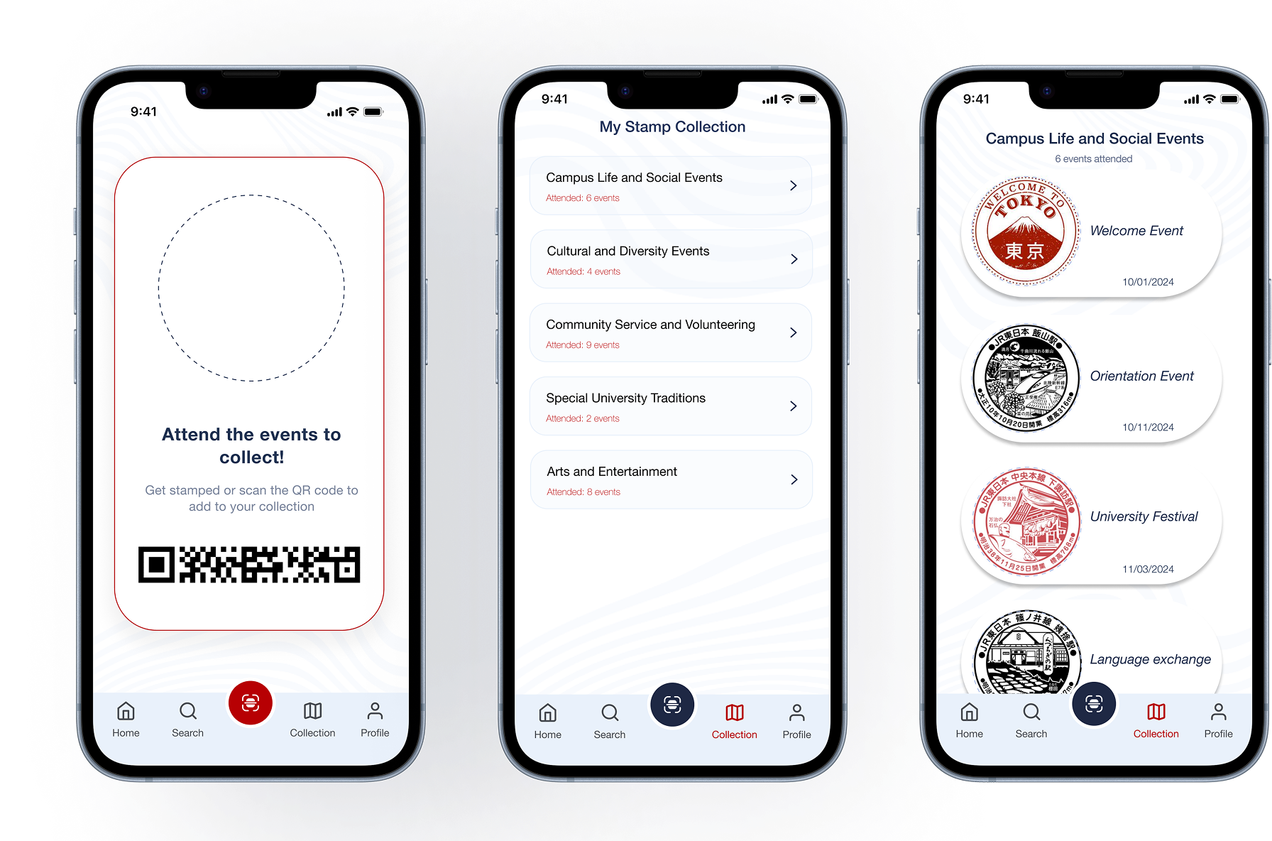 UniStamp is a mobile app that brings together exchange and local students through campus events. As they join activities and meet-ups, students collect digital stamps — turning everyday moments into shared experiences and helping them connect across cultures.