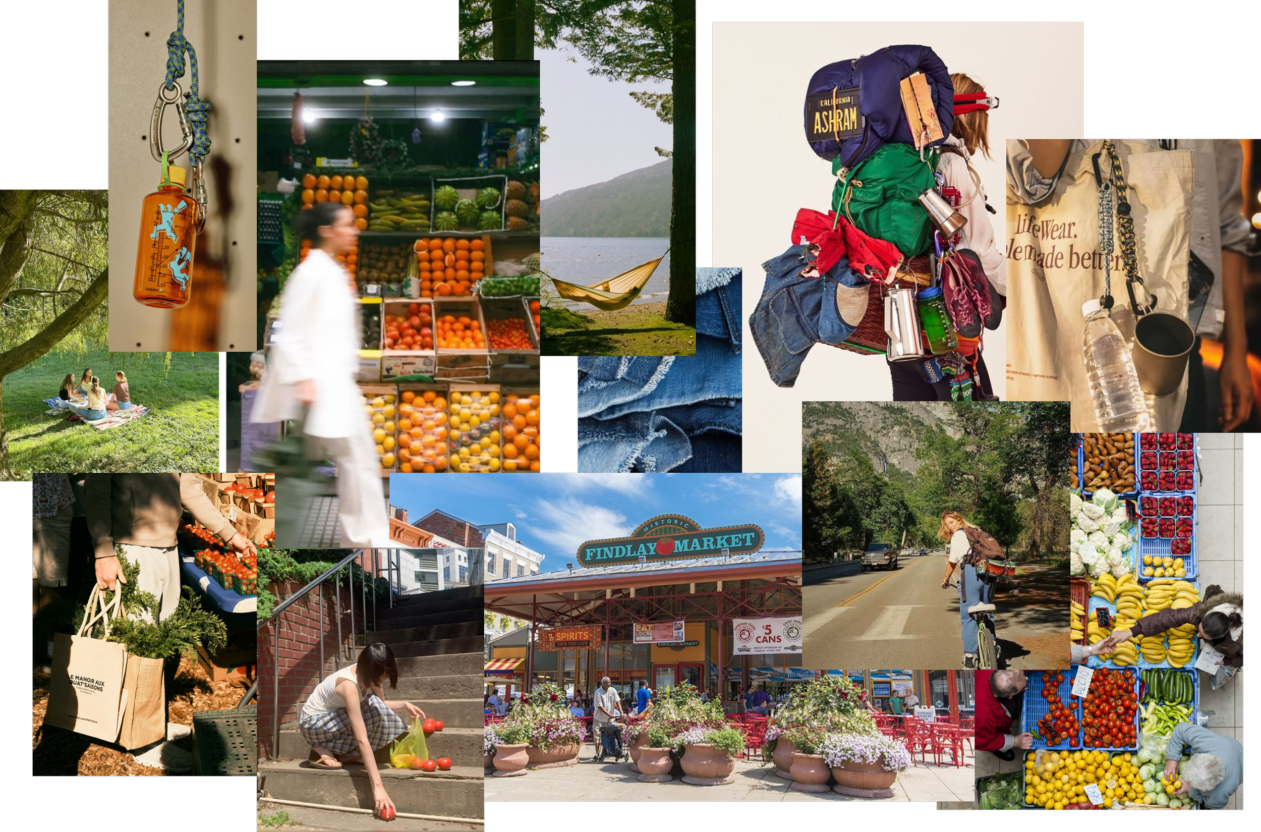 Drawing inspiration from outdoor gear, street fashion, and sustainable design, we created a vision board to guide our aesthetic direction.